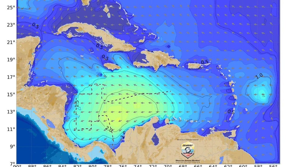 1. El Mar Caribe está presentando la interacción entre la dorsal del alta de Las Azores, un sistema de baja presión al centro del Caribe Colombiano y la Vaguada Monzónica, la cual favorece lluvias dispersas y tormentas eléctricas aisladas en sectores del litoral central y sur.
